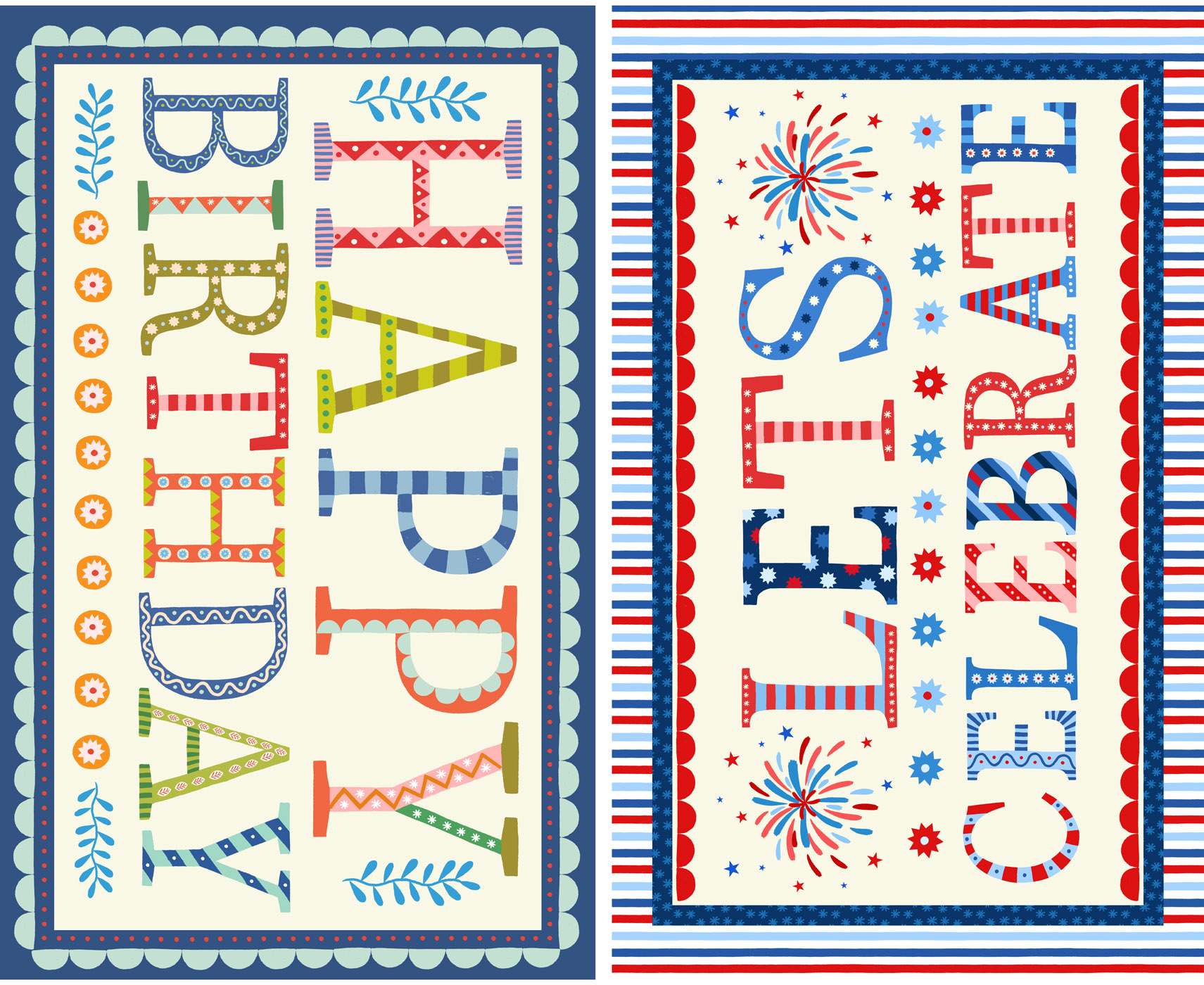 Discover our two celebration heirloom panels – made to quilt, add borders, and embellish as keepsakes to treasure. There’s also birthday bunting to sew and enjoy year after year. Several designs are ideal for creating sustainable gift bags, adding a personal touch to your celebrations.