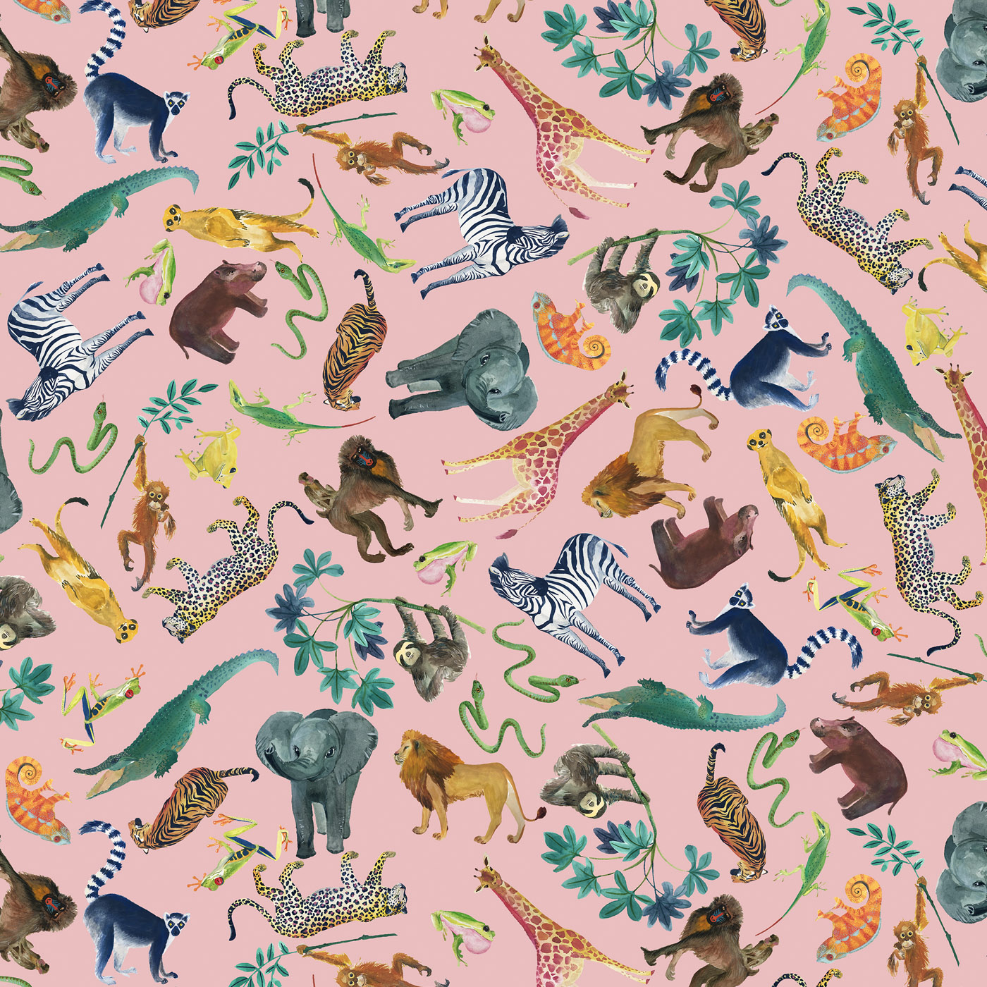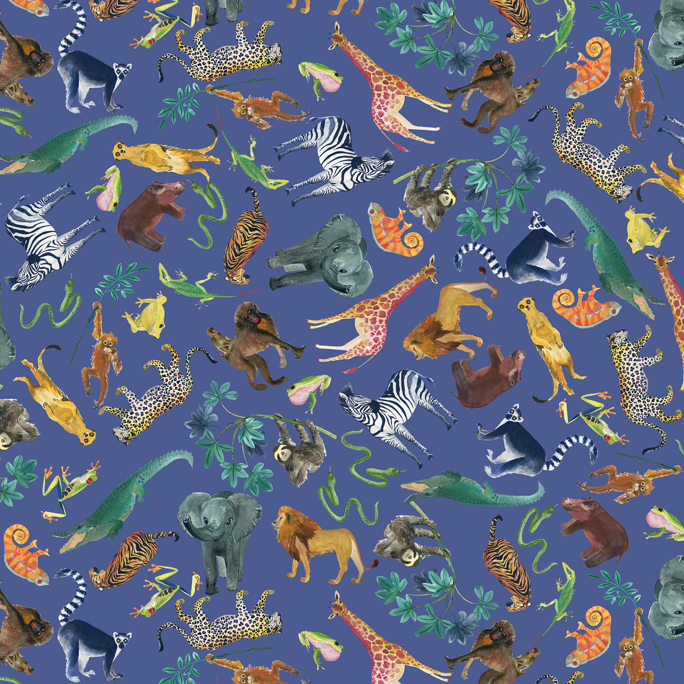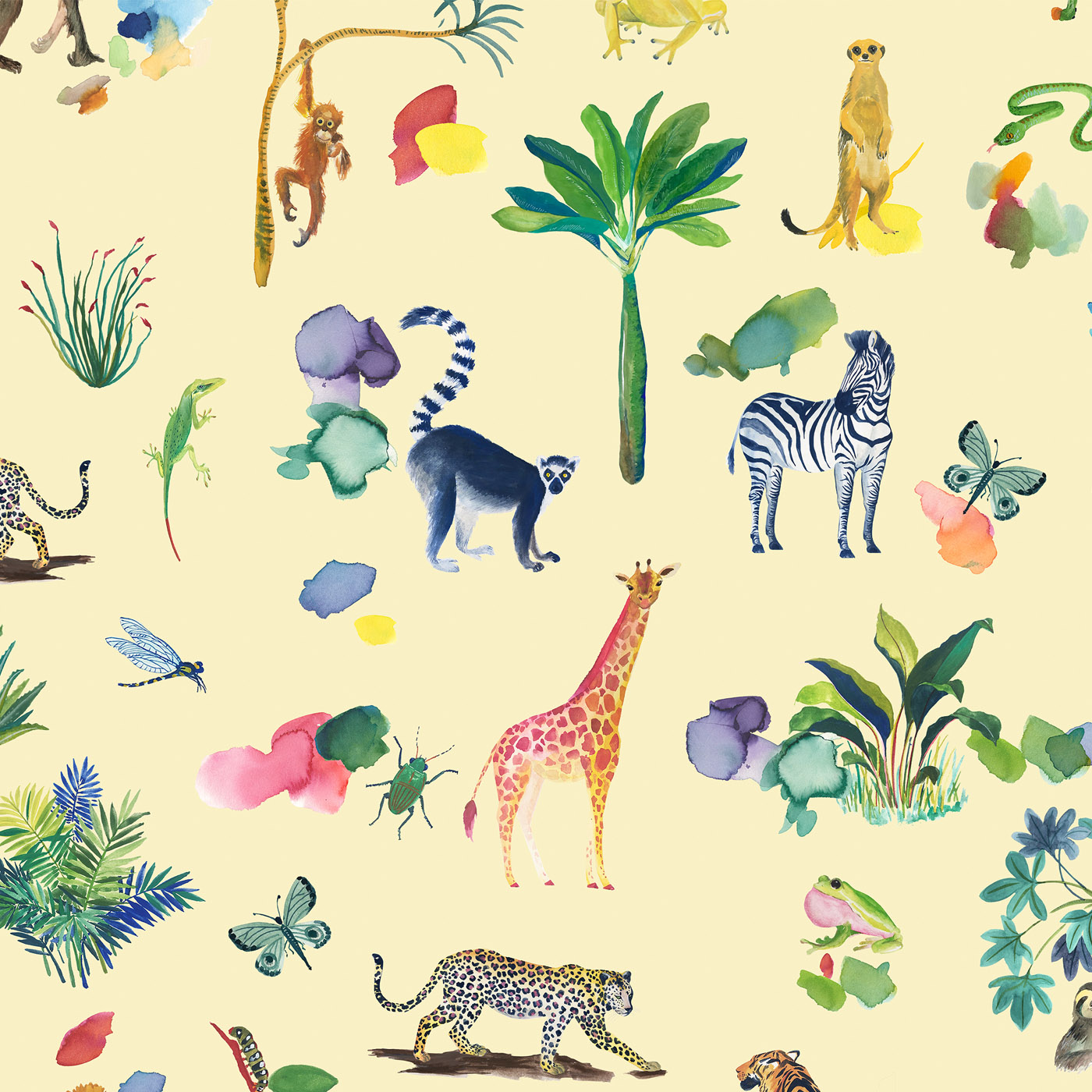 Painted in intricate watercolour detail, the designs are filled with captivating safari animals and lush jungle foliage. Majestic elephants, graceful giraffes, curious zebras, and playful lions wander through patterned landscapes of palm trees and wild grasses.