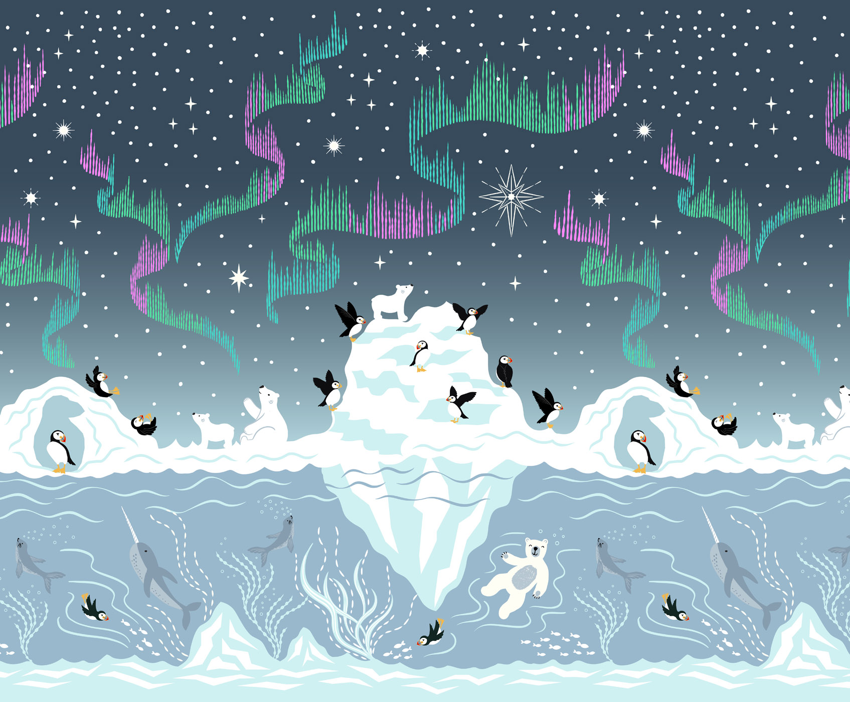 It’s our imagined, magical northern world where puffins spend their winters alongside polar bears and narwhals, all beneath the North Star’s glow, while the northern lights swirl and dance above.