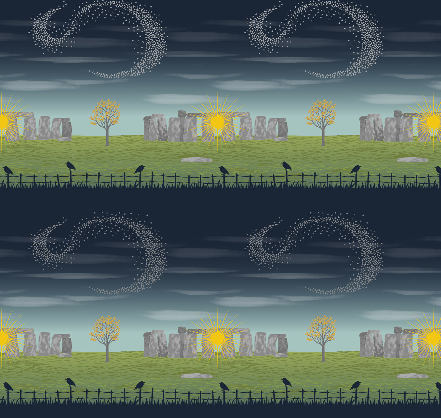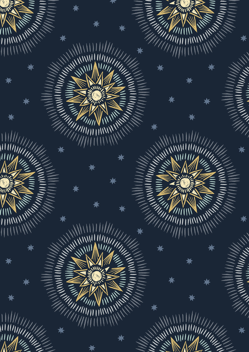 These fabrics, each brushed with metallic accents, are our own tribute to the Winter Solstice.